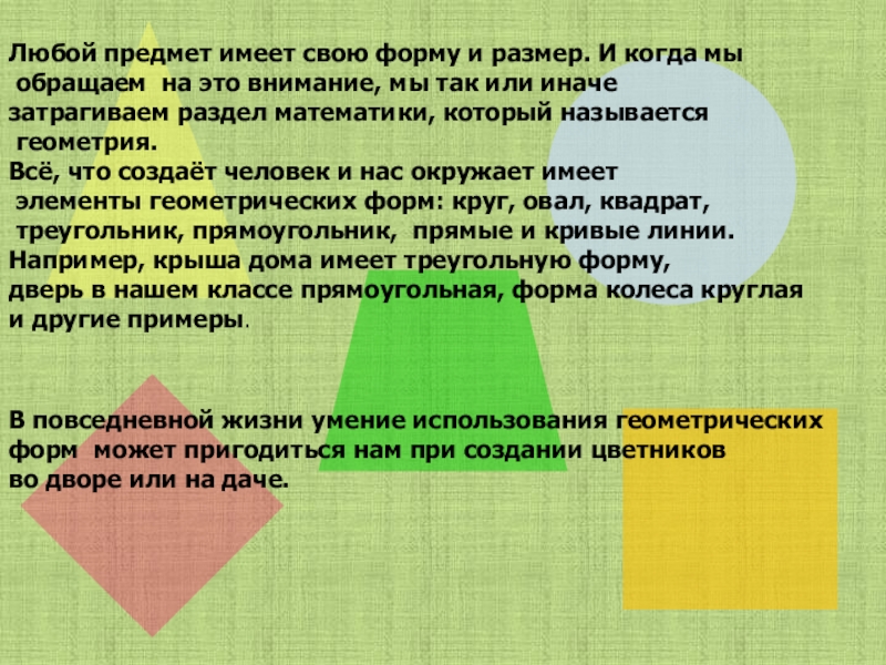 В повседневной жизни умение использования геометрических