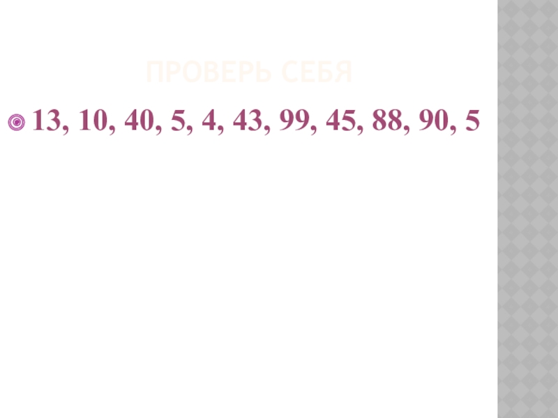 Проверь себя13, 10, 40, 5, 4, 43, 99, 45, 88, 90, 5
