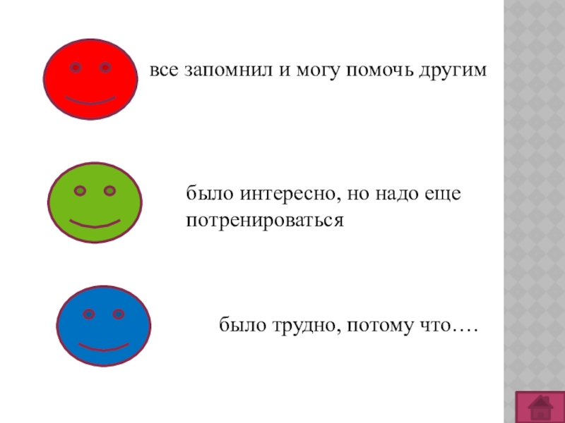все запомнил и могу помочь другимбыло трудно, потому что….было интересно, но надо еще потренироваться