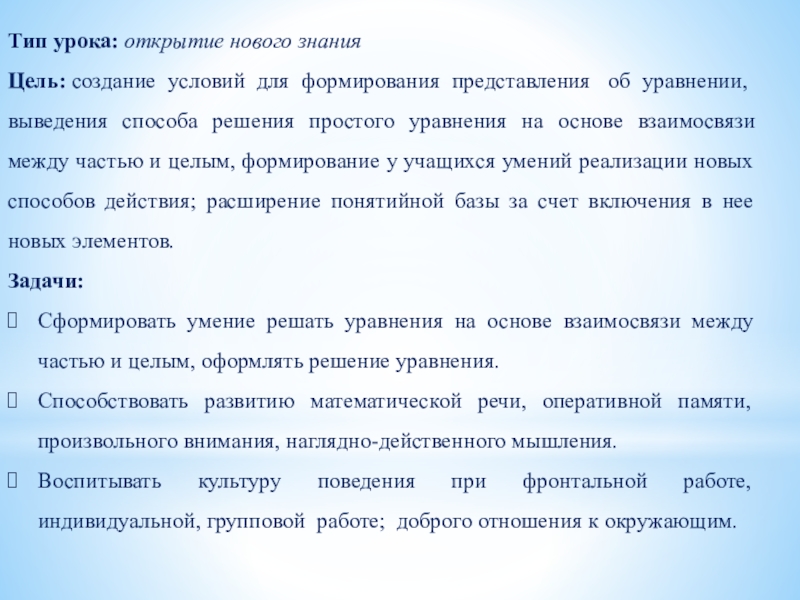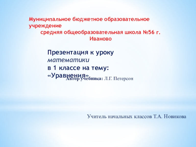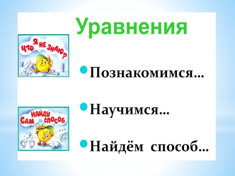 в 1 классе на тему: «Уравнения»