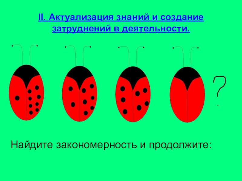 II. Актуализация знаний и создание затруднений в деятельности.Найдите закономерность и продолжите: