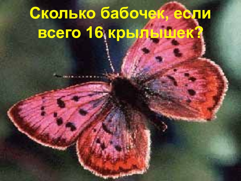 Слайд 16Сколько бабочек, если всего 16 крылышек?