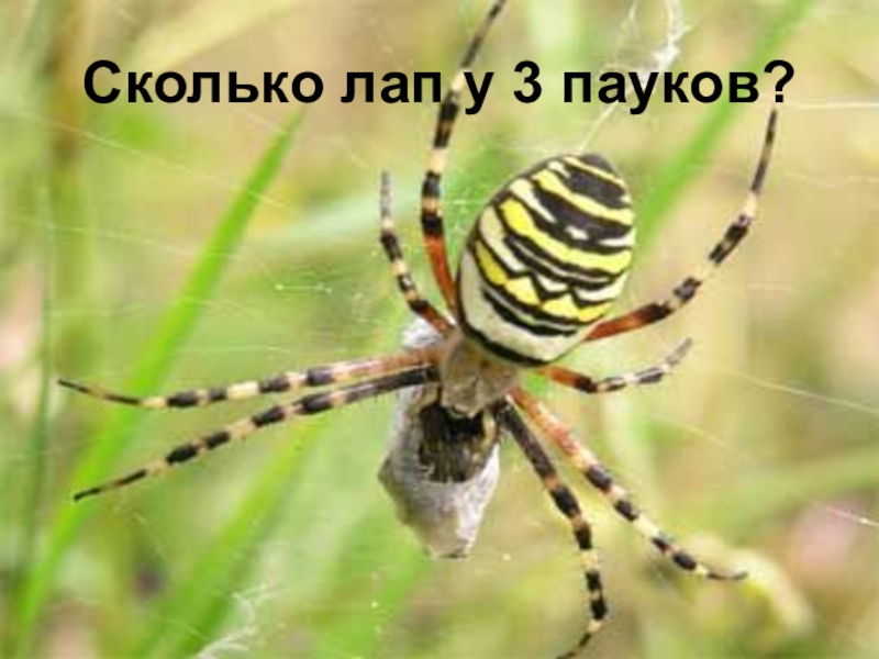 Слайд 15Сколько лап у 3 пауков?