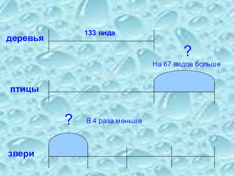 133 вида?В 4 раза меньше?На 67 видов большедеревьяптицызвери