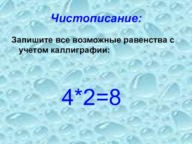 Чистописание: Запишите все возможные равенства с учетом каллиграфии:    4*2=8