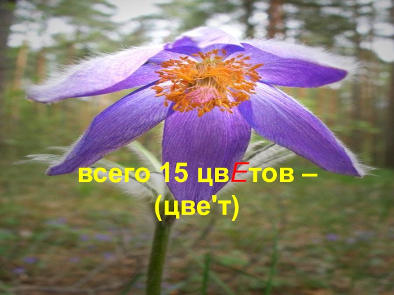 Слайд 20всего 15 цвЕтов – (цве'т)