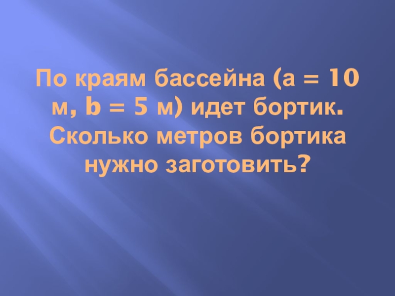 По краям бассейна (а = 10 м, b = 5 м) идет бортик. Сколько метров бортика нужно