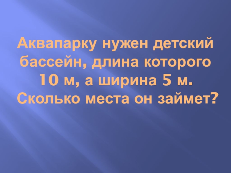 Слайд 5Аквапарку нужен детский бассейн, длина которого 10 м, а ширина 5