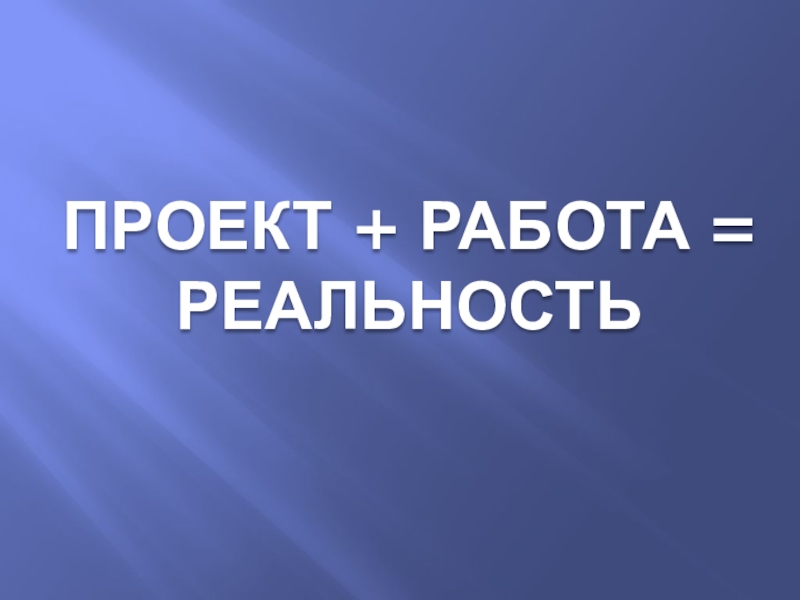 Слайд 16ПРОЕКТ + РАБОТА = РЕАЛЬНОСТЬ