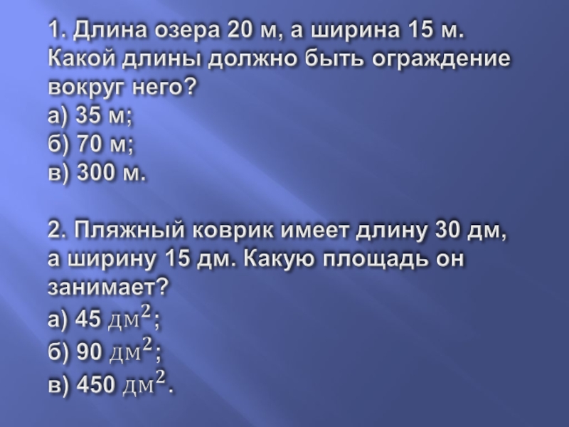 Тема. Формулы. Использование формул периметра и площади прямоугольника, формулы объема прямоугольного параллелепипеда для решения задач.