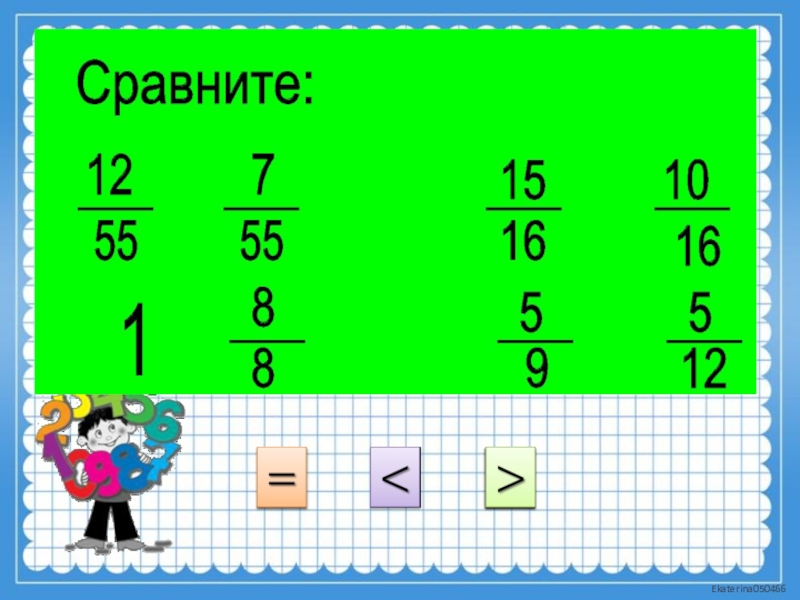 Слайд 4Вычитание дробей с одинаковыми знаменателями