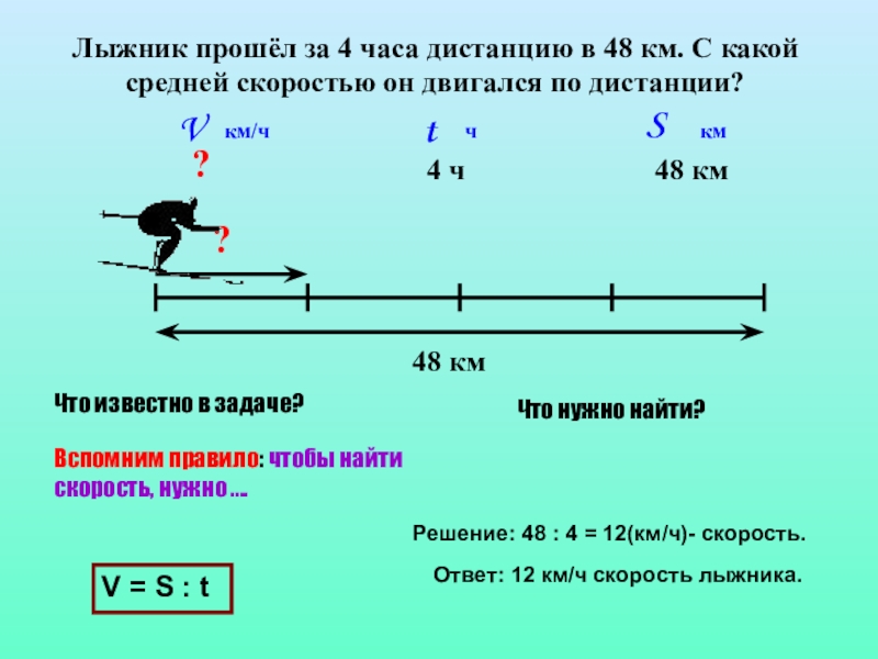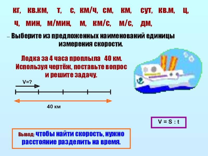 Вывод: чтобы найти скорость, нужно расстояние разделить на время.