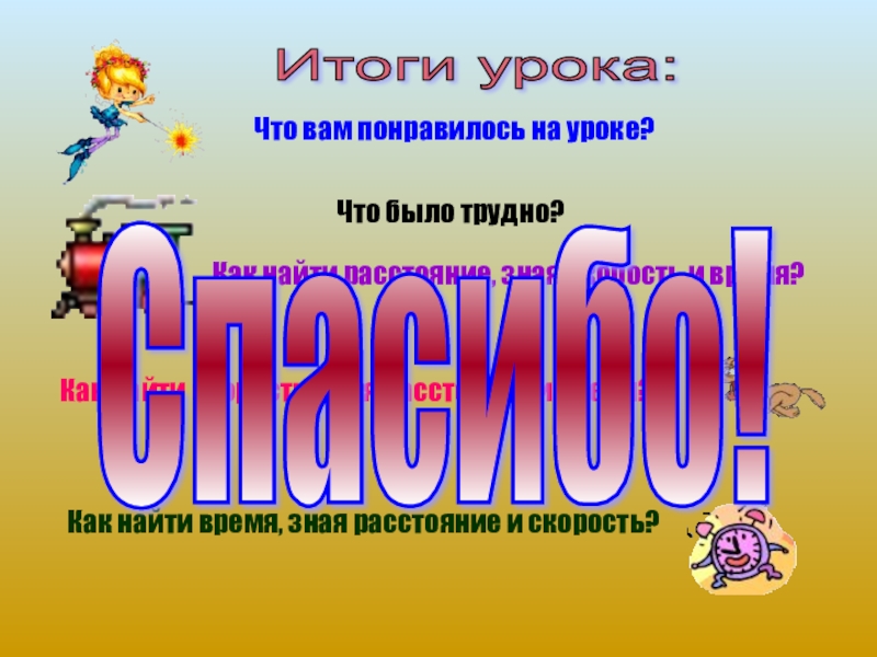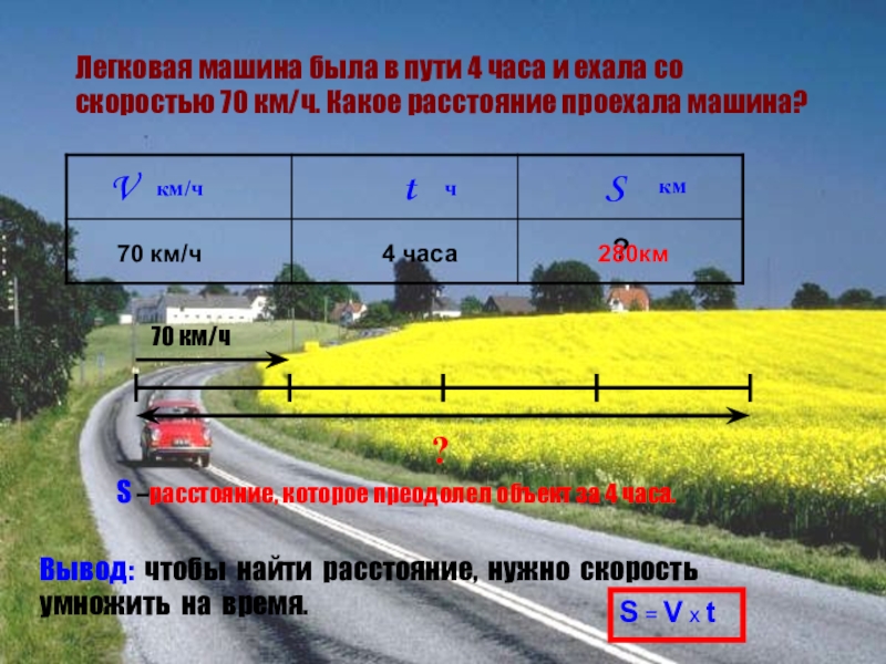 Вывод: чтобы найти расстояние, нужно скорость умножить на время.