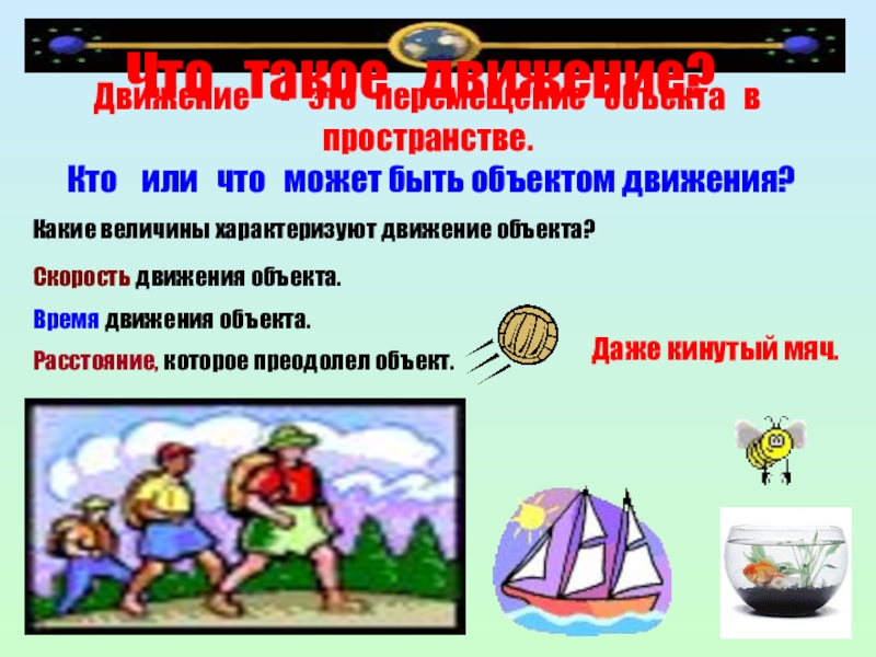 Скорость движения – как быстро движется объект, скорость движения – это расстояние, которое объект преодолевает за единицу времени.