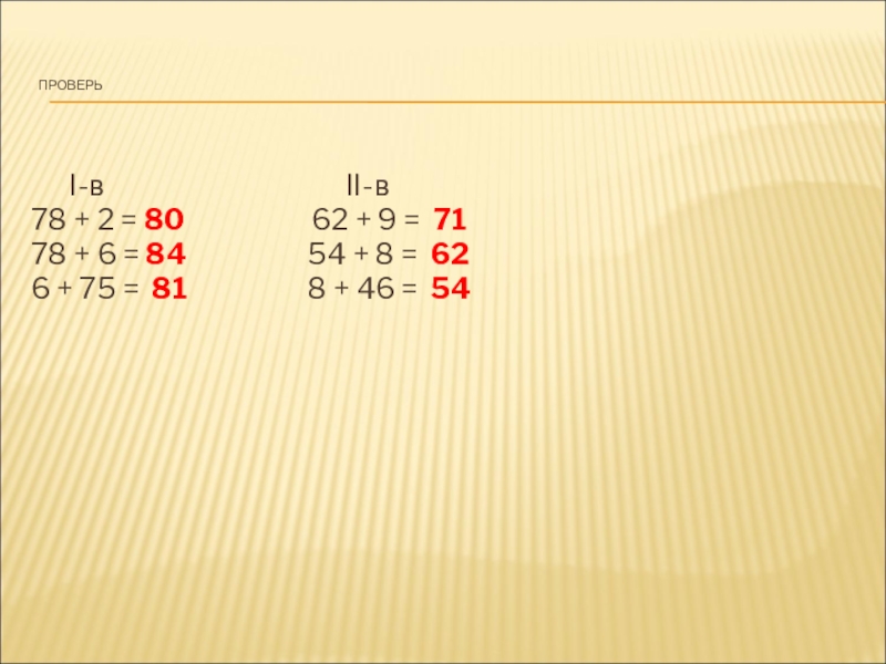78 + 2 = 80 62 + 9 = 71