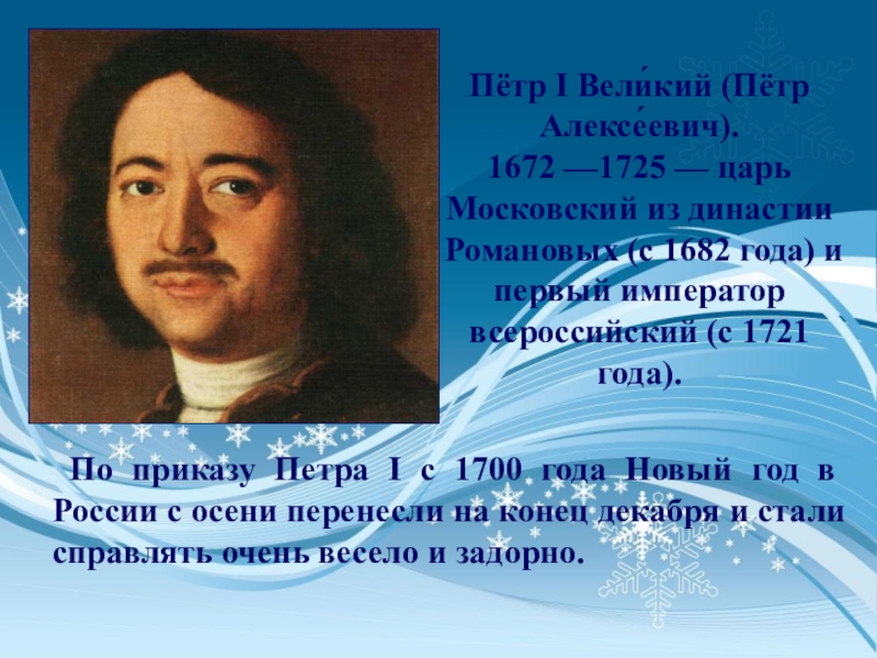 По приказу Петра I с 1700 года Новый год в России с осени перенесли на конец декабря и стали справлять очень весело и задорно.