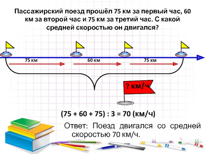 (75 + 60 + 75) : 3 = 70 (км/ч)