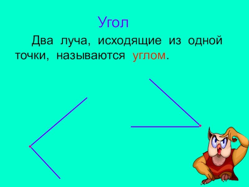 Угол Два луча, исходящие из одной точки, называются углом.