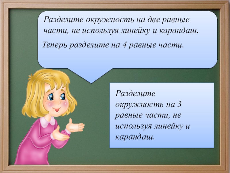 Разделите окружность на 3 равные части, не используя линейку и карандаш.
