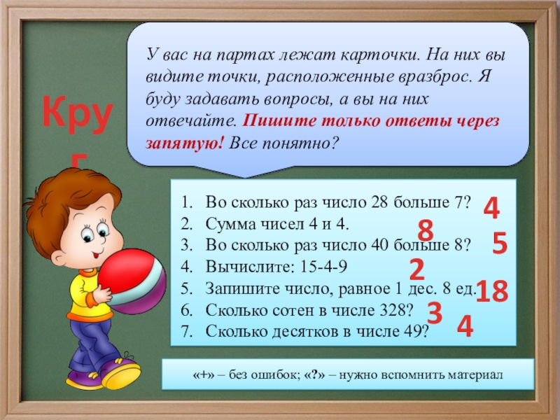 «+» – без ошибок; «?» – нужно вспомнить материал