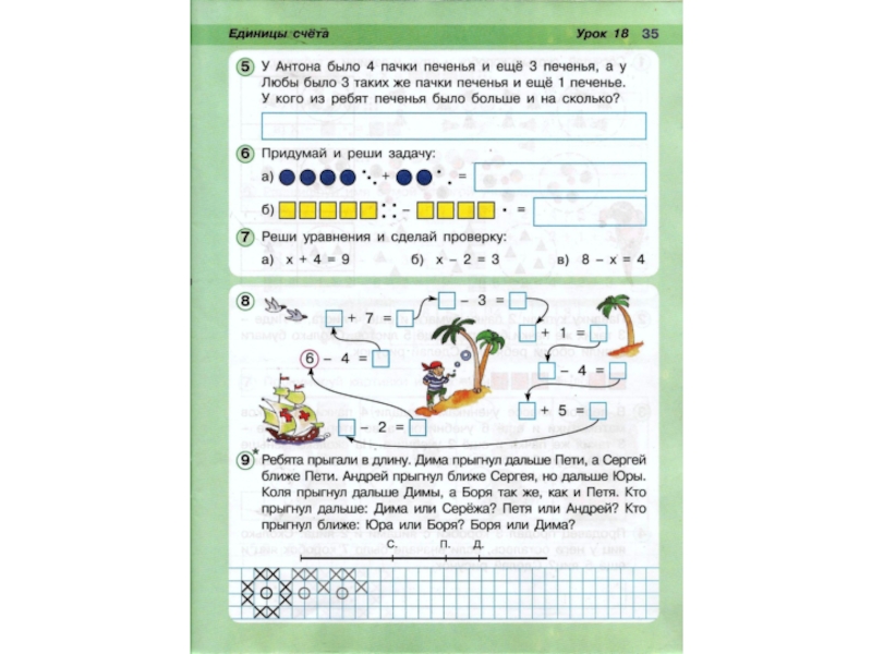 8. На сколько надо уменьшить 9, чтобы получить 7?