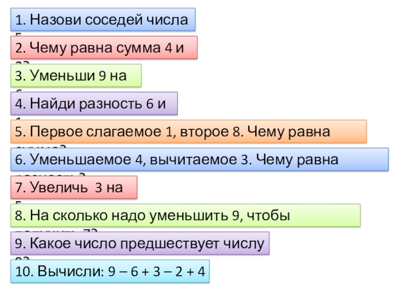 10. Вычисли: 9 – 6 + 3 – 2 + 4