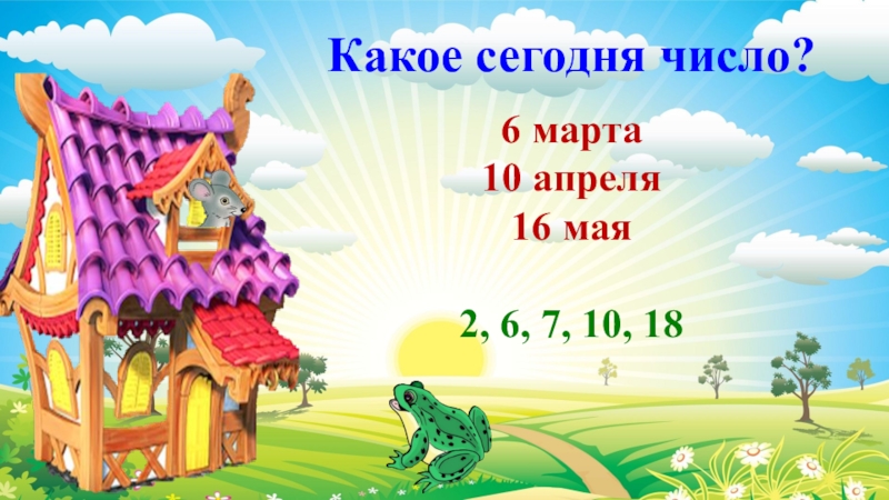 Какое сегодня число?6 марта10 апреля16 мая2, 6, 7, 10, 18