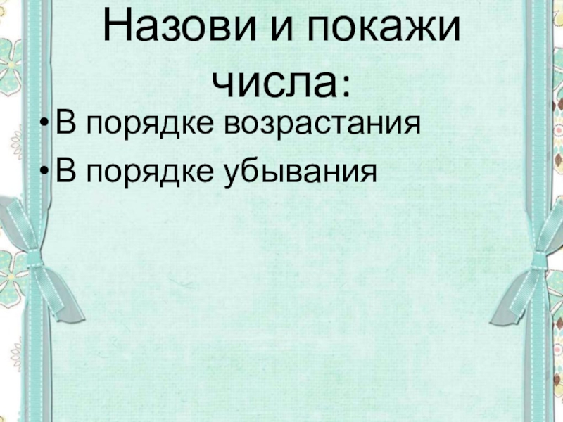 Назови и покажи числа:В порядке возрастанияВ порядке убывания