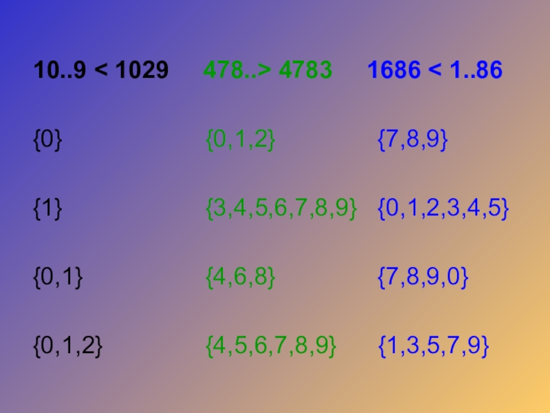 {1} {3,4,5,6,7,8,9} {0,1,2,3,4,5}