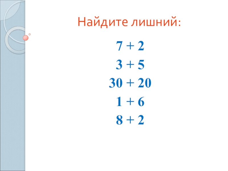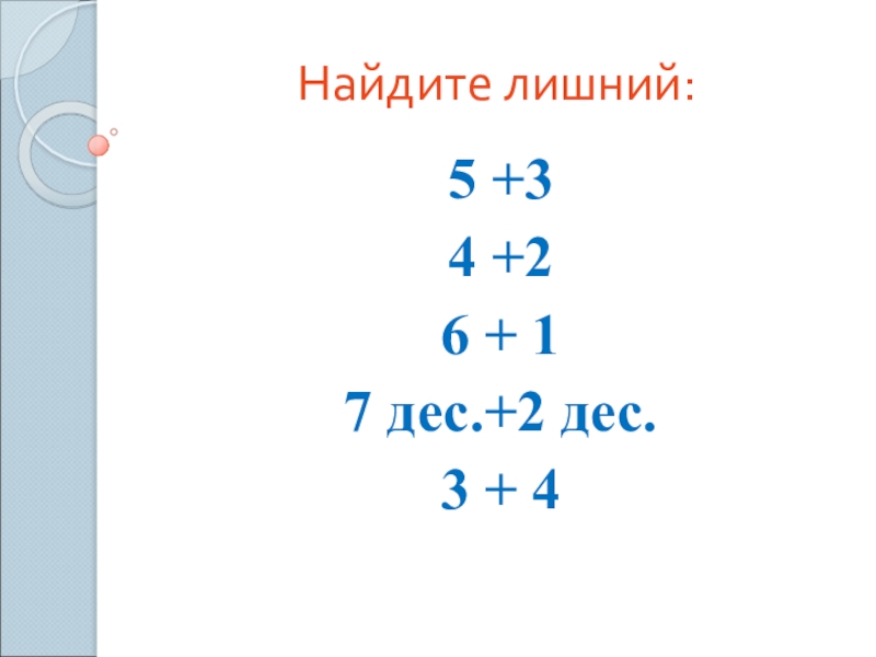 Найдите лишний:5 +34 +26 + 17 дес.+2 дес.3 + 4