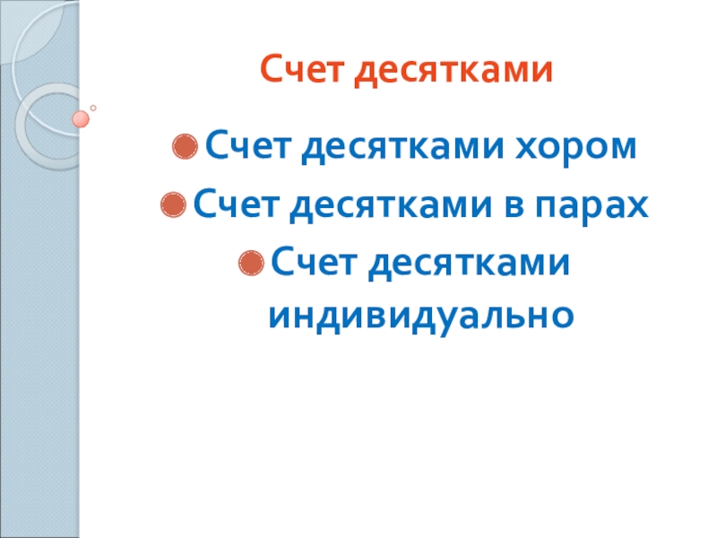 Счет десяткамиСчет десятками хоромСчет десятками в парахСчет десятками индивидуально