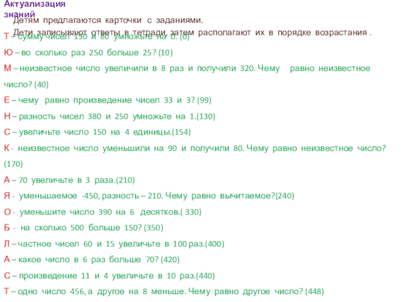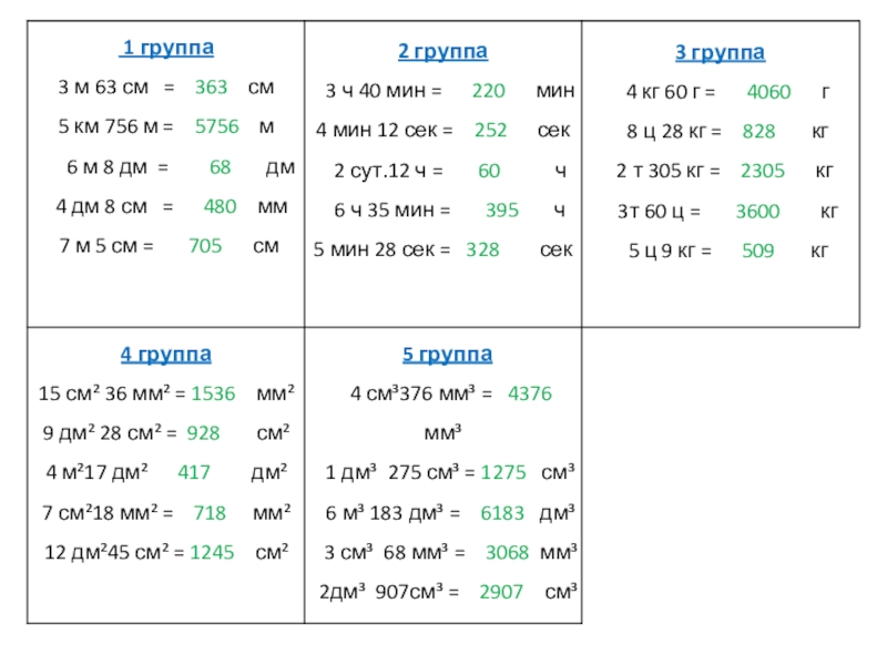/Дети получают карточки с именованными числами и переводят в другие единицы измерения./