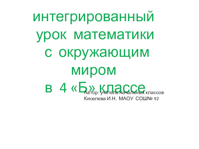 Автор: учитель начальных классов Киселева И.Н. МАОУ СОШ№ 92