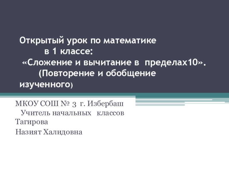 Учитель начальных классов Тагирова