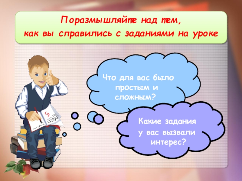 Поразмышляйте над тем, как вы справились с заданиями на урокеЧто для вас было простым и сложным? Какие