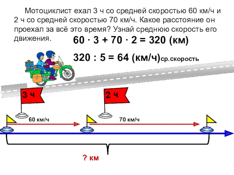 60 ∙ 3 + 70 ∙ 2 = 320 (км)