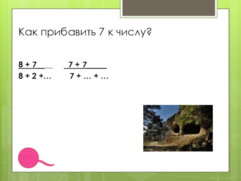 Слайд 1Прибавление 7 к числу