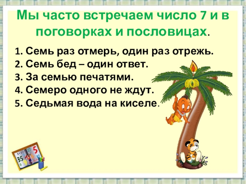 основании составить презентацию и книжку- малышку «Числа в загадках, пословицах и стихах».