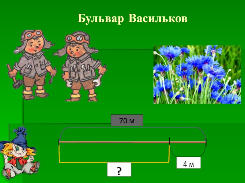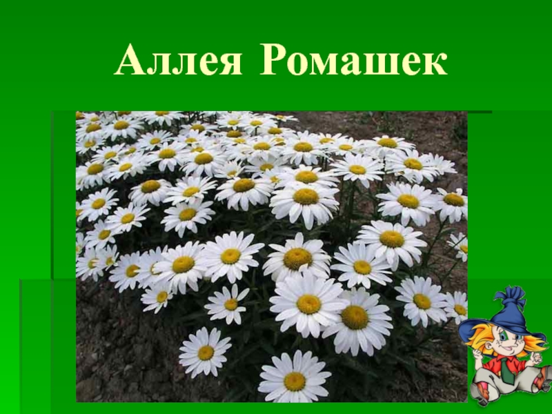 Слайд 10Кнопочка и Гусля шли по аллее Ромашек навстречу друг другу. Кнопочка