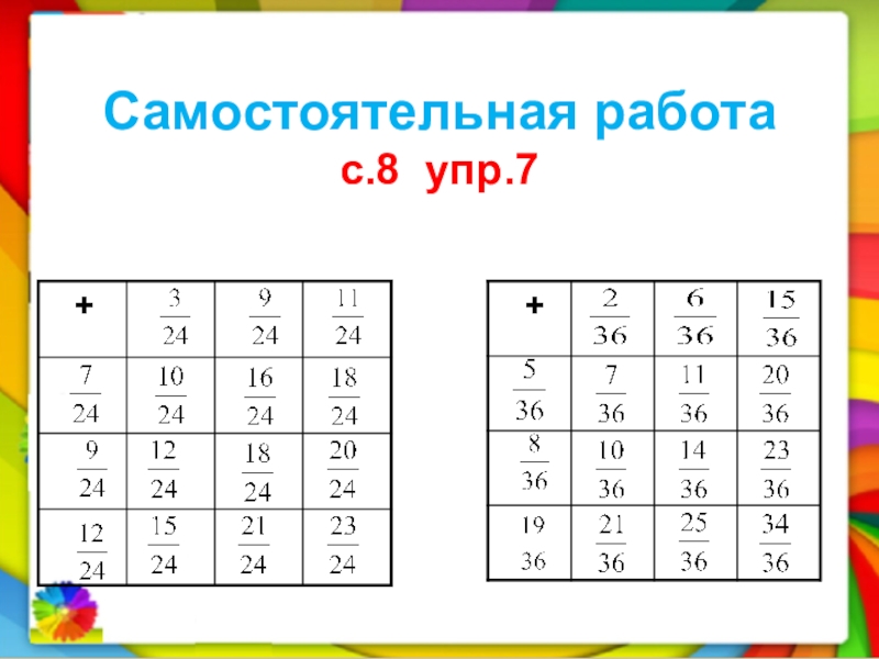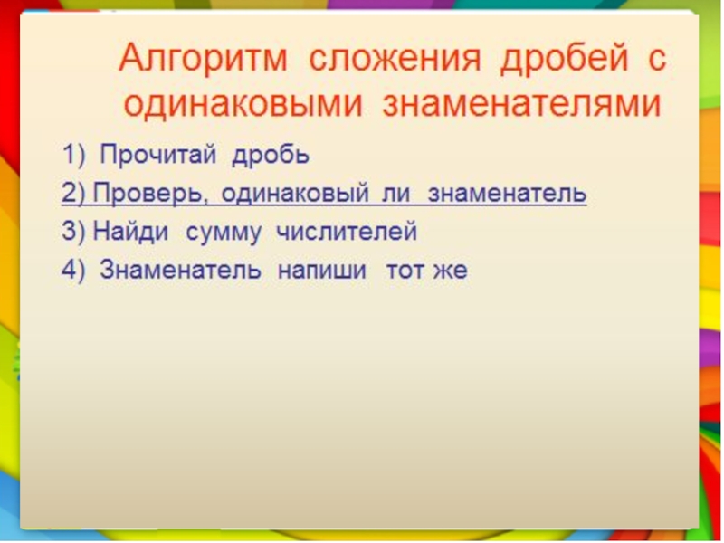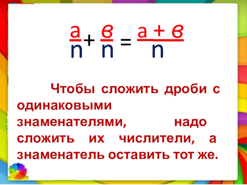Презентация, доклад к уроку математики Сложение дробей с одинаковыми знаменателями
