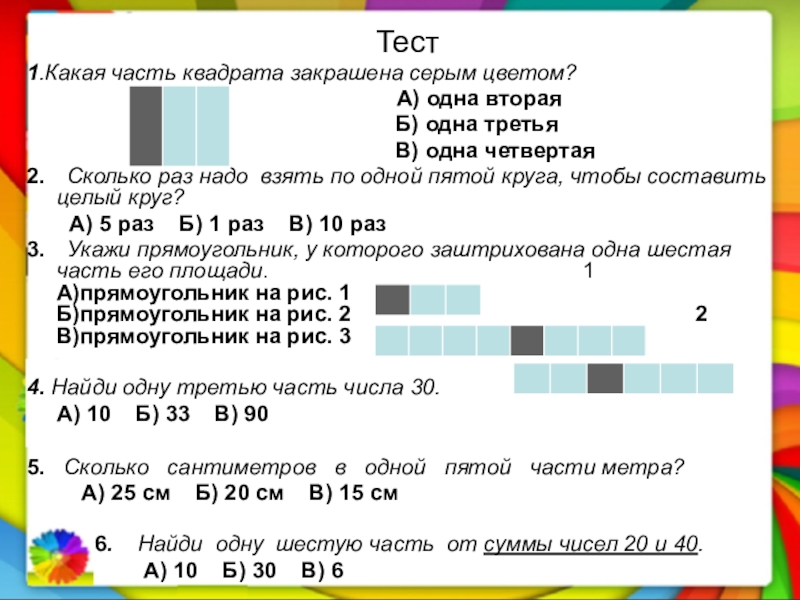 Тест1.Какая часть квадрата закрашена серым цветом?