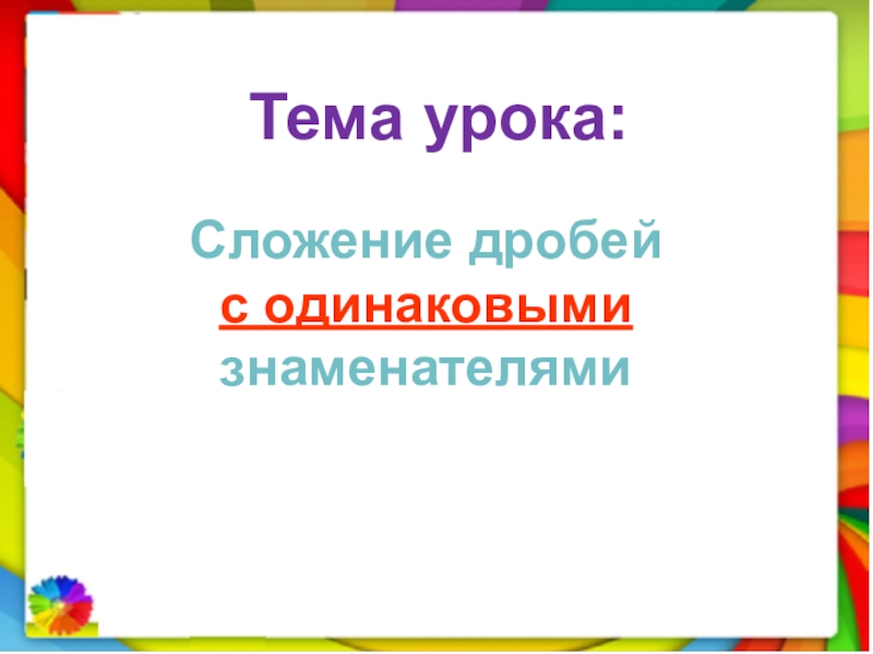 Сложение дробейс одинаковыми знаменателямиТема урока: