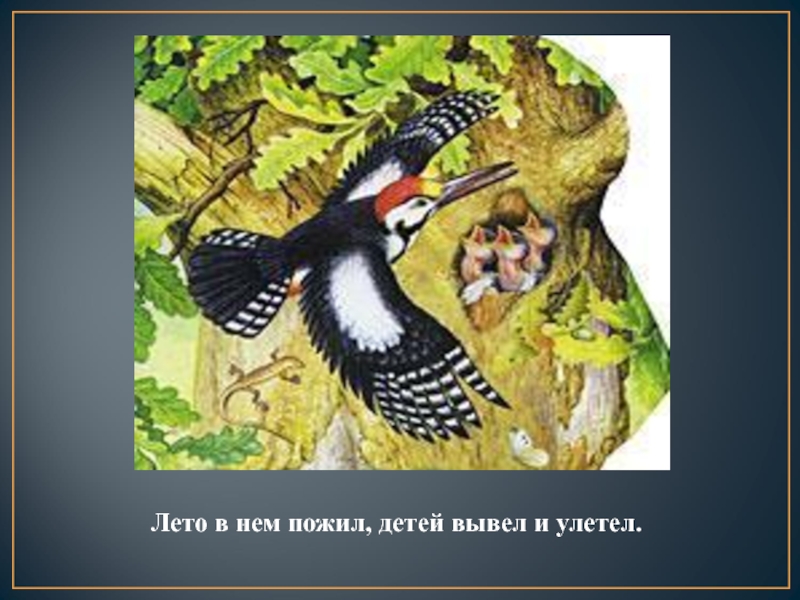 Слайд 5 Лето в нем пожил, детей вывел и улетел.