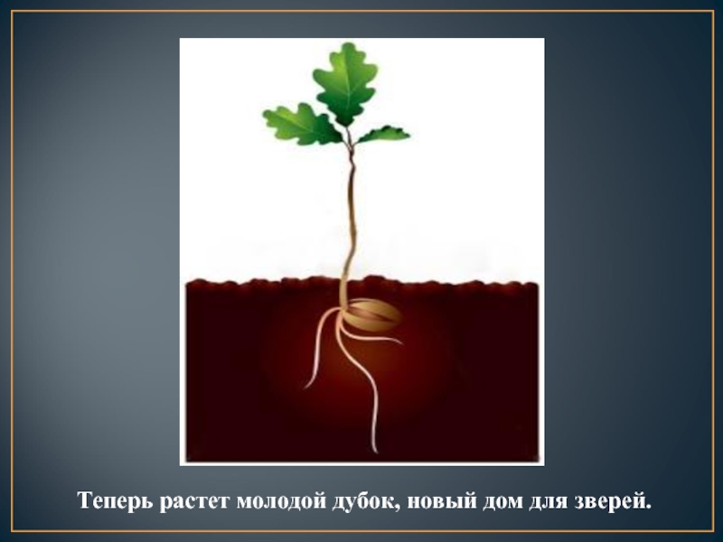 Слайд 23Теперь растет молодой дубок, новый дом для зверей.