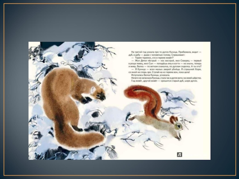 Слайд 14 На третий год узнала про дупло Белка. Прискакала. Видит -