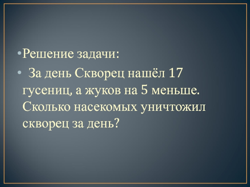 5 меньше. Сколько насекомых уничтожил скворец за день?