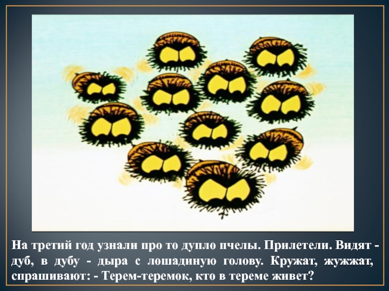 Слайд 18На третий год узнали про то дупло пчелы. Прилетели. Видят -