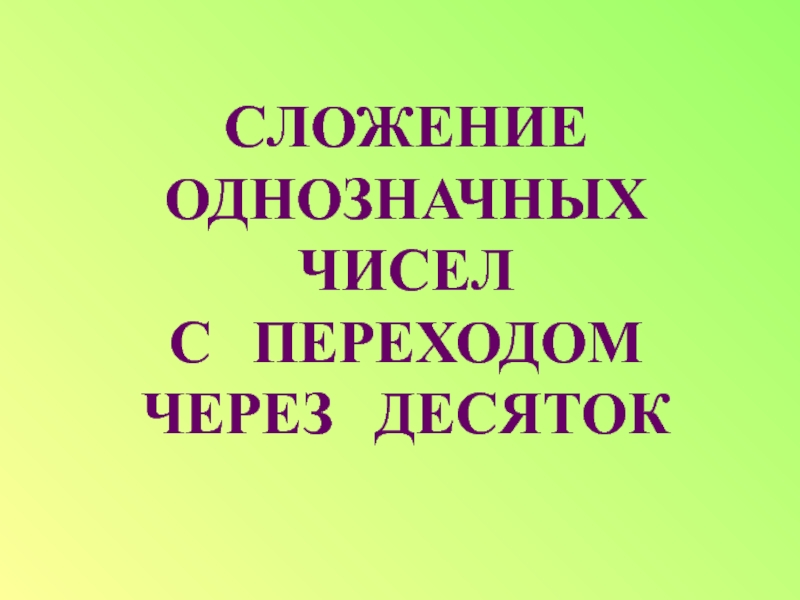 Слайд 1СЛОЖЕНИЕ ОДНОЗНАЧНЫХ ЧИСЕЛ С ПЕРЕХОДОМ ЧЕРЕЗ ДЕСЯТОК
