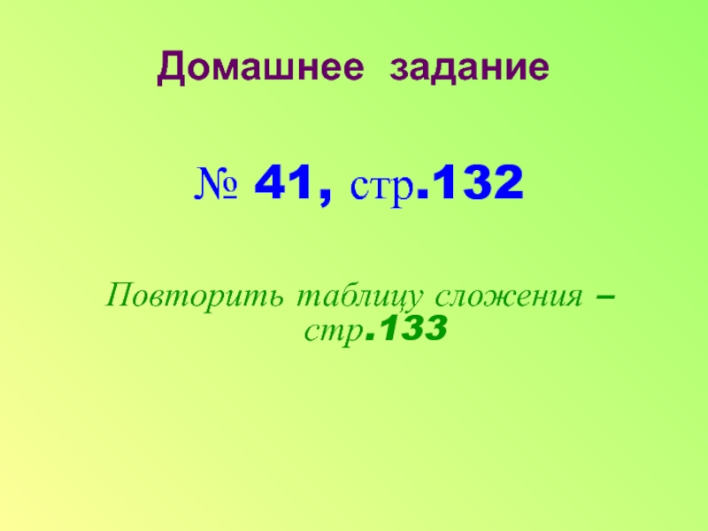 Домашнее задание      № 41, стр.132Повторить таблицу сложения – стр.133