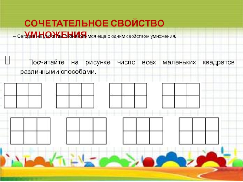 Посчитайте на рисунке число всех маленьких квадратов различными способами.